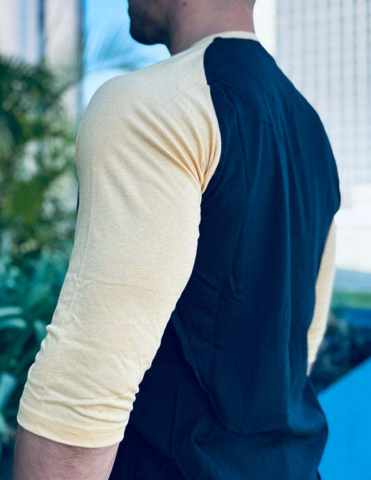 PLAYERA LONG FIT 3/4 Black/Yellow